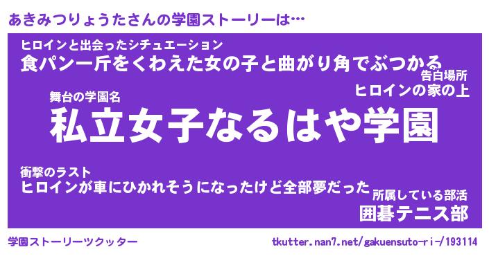 | 伝説のあだ名 | 『不死鳥のスナイパーあきみつりょうた』 |