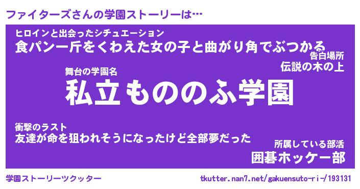 | 女子向けラノベタイトル風あだ名 | 『(仮)ファイターズのやんごとなき事情』 |