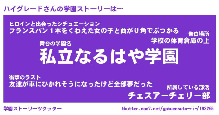 | ヒーロー風カッコイイあだ名 | 『スーパーハイグレード』『幻影騎士ハイ』 |