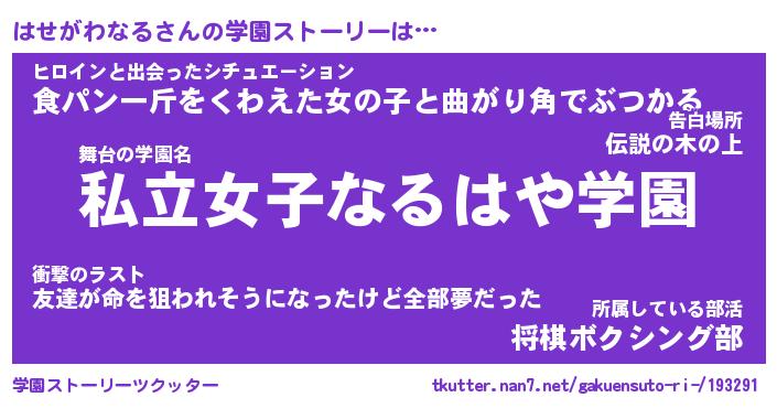 | 男性向けラノベタイトル風あだ名 | 『ハセガワナルアートオンライン』 |