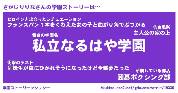 | 女子向けラノベタイトル風あだ名 | 『(仮)さかじりりなのやんごとなき事情』 |