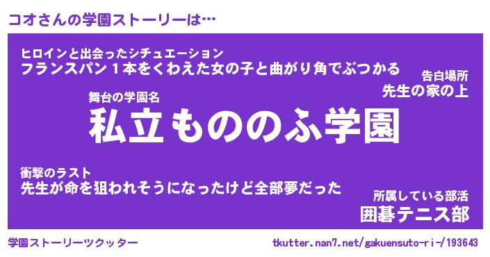 | 告白場所 先生の家の上 …「ふぃぎゅこ」 | 2月17日 06:24 |