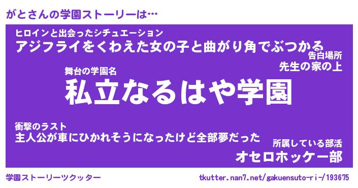 | 告白場所 先生の家の上 …「ふぃぎゅこ」 | 2月17日 06:24 |