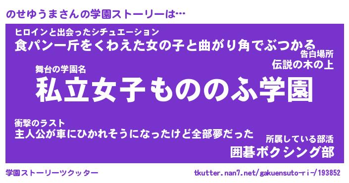| ファンタジー風あだ名 | 『ノセフェル』『エターナルノセユウマー』 |
