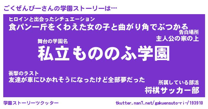 | 男性向けラノベタイトル風あだ名 | 『ごくぜんぴーの憂鬱』 |