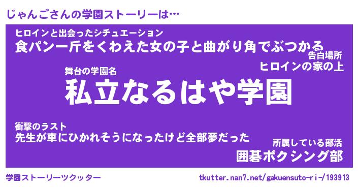 | 女子向けラノベタイトル風あだ名 | 『じゃんご姫と円卓の騎士』 |