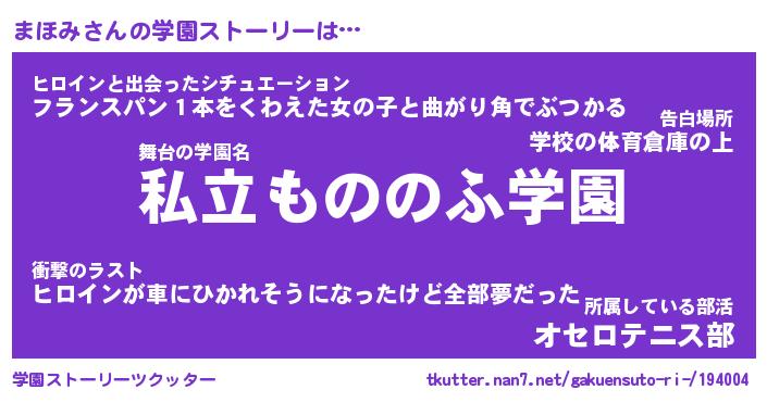 | 胡散臭い通販商品みたいなあだ名 | 『必ず成功するブレスレット…その名も「まほみ」』 |