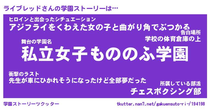 | 男性向けラノベタイトル風あだ名 | 『ライブレッドアートオンライン』 |