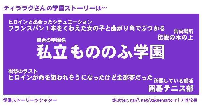 | 男性向けラノベタイトル風あだ名 | 『ティララクの憂鬱』 |