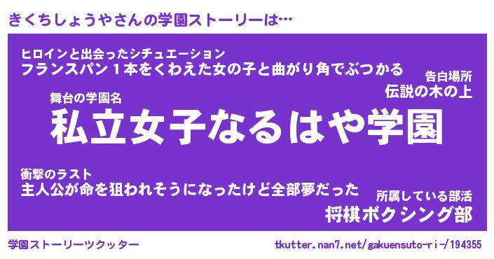 | 伝説のあだ名 | 『封印されしスナイパーきくちしょうや』 |