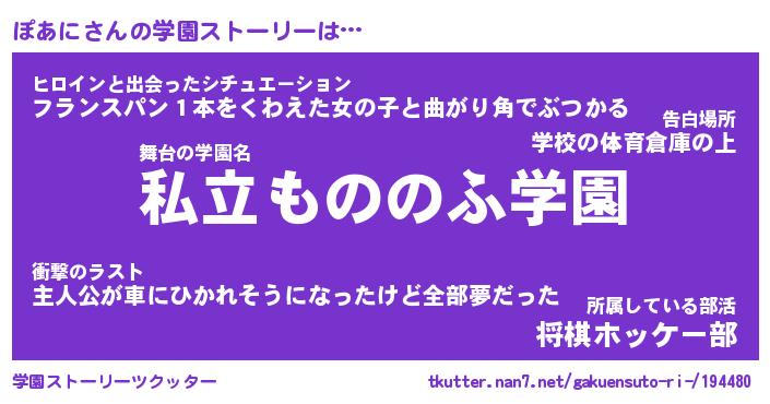 | ヘコむあだ名 | 『ぽあにゅー』『豆乳』『ぽあっ子』 |