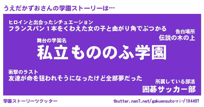 | ツイッター | うえだかずおさんのツイッターID『kikurage_idle』 |