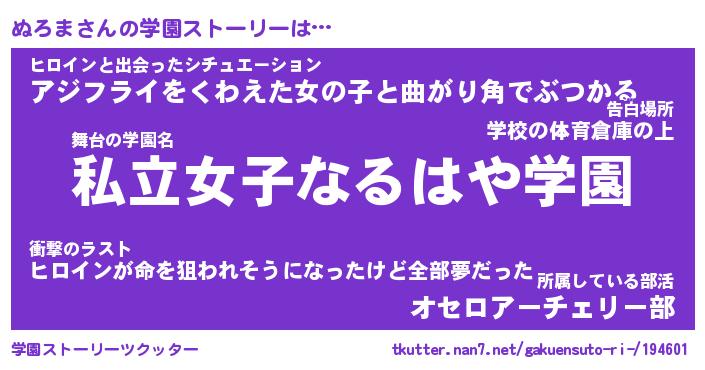 | 女子向けラノベタイトル風あだ名 | 『ぬろま姫と円卓の騎士』『ぬろま恋絵巻』 |