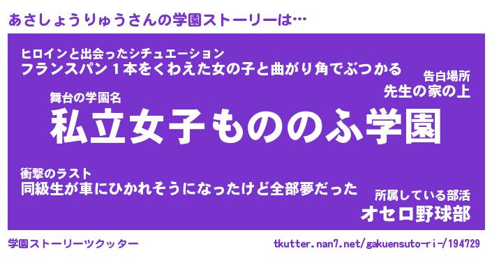 | 男性向けラノベタイトル風あだ名 | 『アサショウリュウアートオンライン』 |