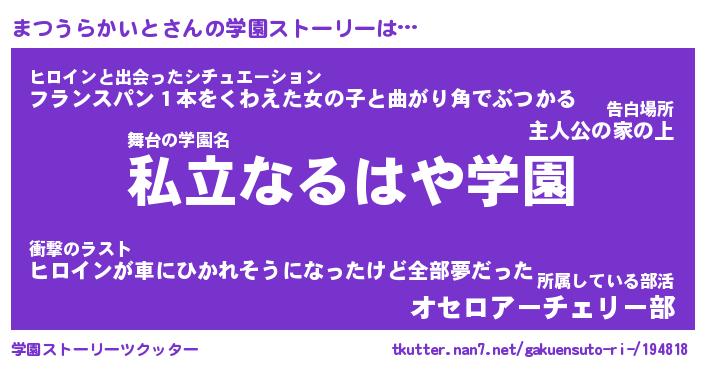 | 男性向けラノベタイトル風あだ名 | 『まつうらかいとの憂鬱』 |