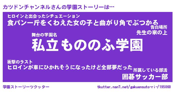 | 男性向けラノベタイトル風あだ名 | 『カツドンチャンネルの憂鬱』 |