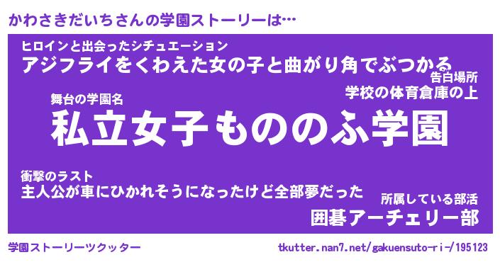 | 女子向けラノベタイトル風あだ名 | 『かわさきだいち姫と円卓の騎士』 |