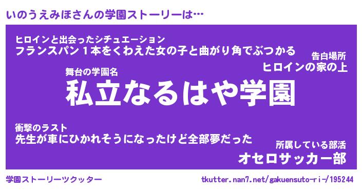 | 肩書あだ名 | 『いのうえみほ店長』『いのうえみほ団長』 |