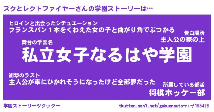 | 女子向けラノベタイトル風あだ名 | 『誰かこのスクとレクトファイヤーを説明してください! ~契約から始まるウェディング~』 |