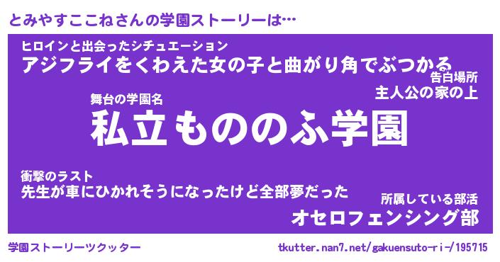 | 男性向けラノベタイトル風あだ名 | 『とみやすここねの憂鬱』 |