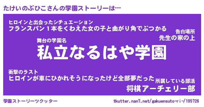 | 男性向けラノベタイトル風あだ名 | 『たけいのぶひこの憂鬱』 |