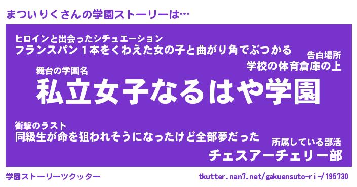 | 男性向けラノベタイトル風あだ名 | 『マツイリクアートオンライン』 |