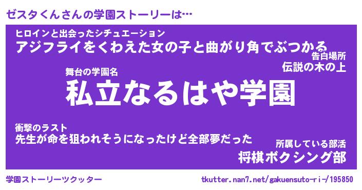 | ファンタジー風あだ名 | 『ゼスフェル』『エターナルゼスタクンー』 |