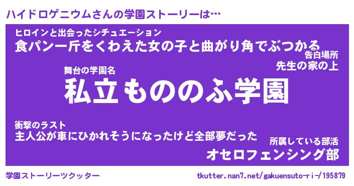 | 男性向けラノベタイトル風あだ名 | 『ハイドロゲニウムの憂鬱』 |