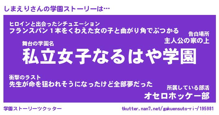 | 告白場所 先生の家の上 …「ふぃぎゅこ」 | 2月17日 06:24 |