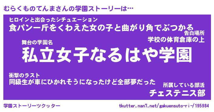 | 告白場所 先生の家の上 …「ふぃぎゅこ」 | 2月17日 06:24 |