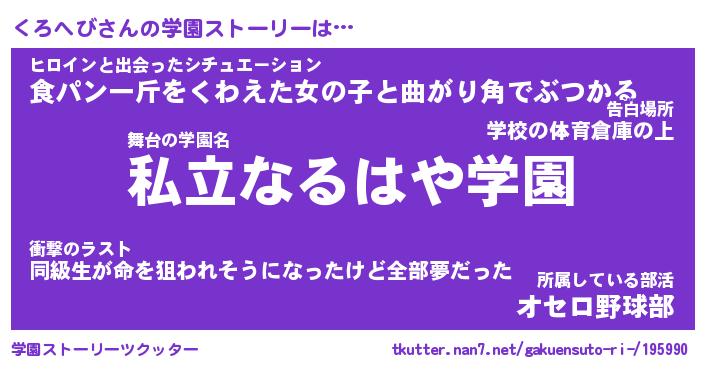 | 伝説のあだ名 | 『伝説のスナイパーくろへび』 |