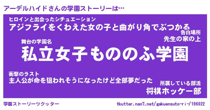 | 恥ずかしいあだ名 | 『プリティーアーデルハイド』『アーちん』 |