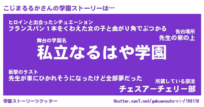| 女子向けラノベタイトル風あだ名 | 『(仮)こじまるるかのやんごとなき事情』 |