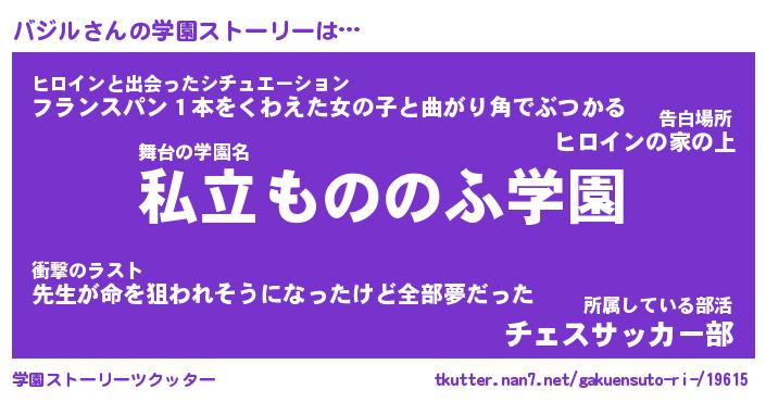| 女子向けラノベタイトル風あだ名 | 『(仮)バジルのやんごとなき事情』 |
