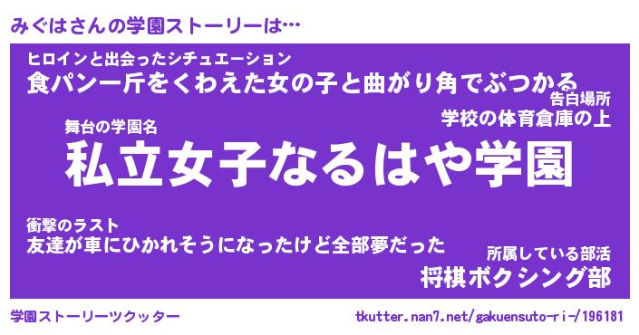 | ヒーロー風カッコイイあだ名 | 『スーパーミグハ』『ウルトラみぐはマン』 |