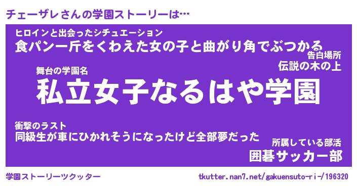 | ヒーロー風カッコイイあだ名 | 『スーパーチェーザレ』『暗黒騎士チェ』 |