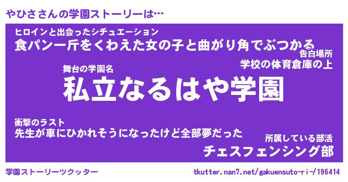 | ファンタジー風あだ名 | 『ヤヒフェル』『エターナルヤヒサー』 |