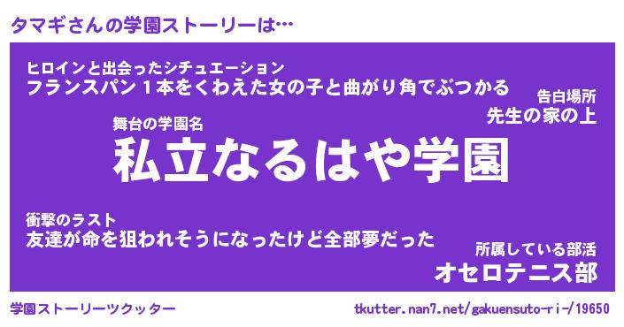 | 女子向けラノベタイトル風あだ名 | 『(仮)タマギのやんごとなき事情』 |