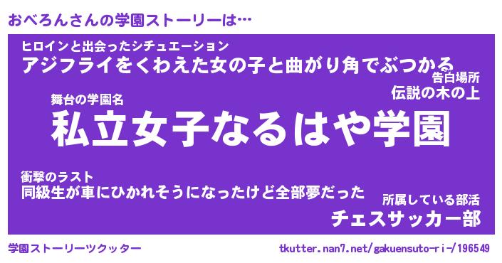 | 意味不明あだ名 | 『ペロリンおべろん』『永久保存おべろん』 |