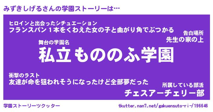 | 男性向けラノベタイトル風あだ名 | 『みずきしげるの憂鬱』 |