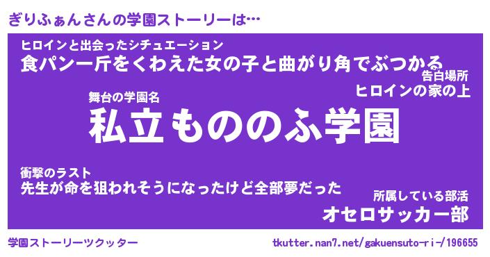 | ファンタジー風あだ名 | 『ギリフェル』『エターナルギリファンー』 |