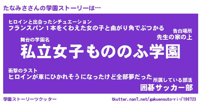 | 女子向けラノベタイトル風あだ名 | 『たなみさ姫と円卓の騎士』 |