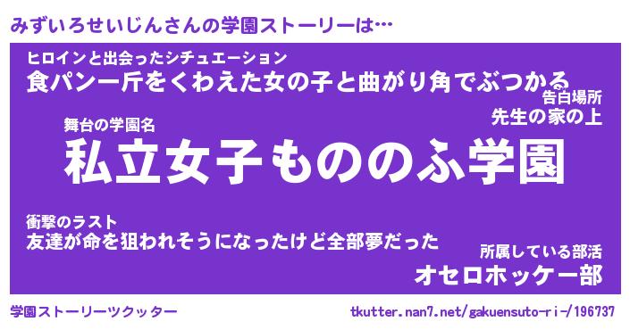 | 胡散臭い通販商品みたいなあだ名 | 『モテモテ間違いなしブレスレット…その名も「みずいろせいじん」』 |