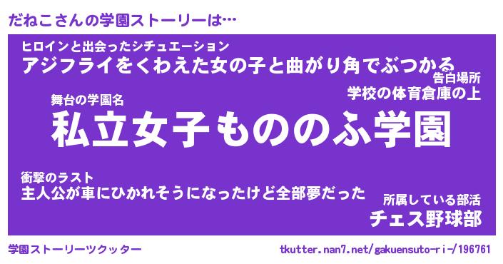 | 女子向けラノベタイトル風あだ名 | 『だねこ姫と円卓の騎士』 |