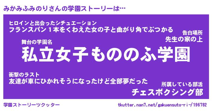 | 女子向けラノベタイトル風あだ名 | 『みかみふみのり姫と円卓の騎士』 |