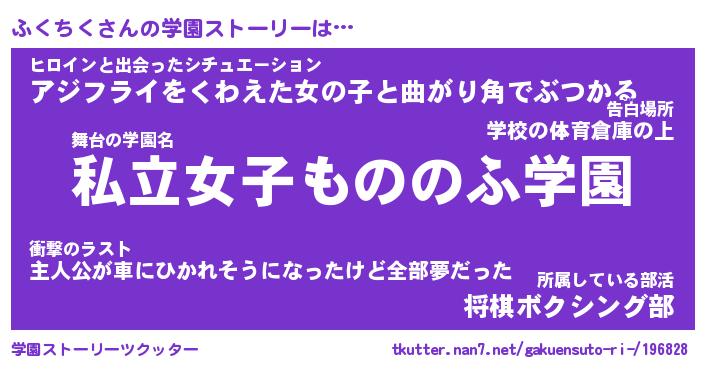 | 女子向けラノベタイトル風あだ名 | 『ふくちく姫と円卓の騎士』 |