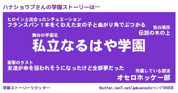 | ファンタジー風あだ名 | 『ハナフェル』『ファントムハナス』 |