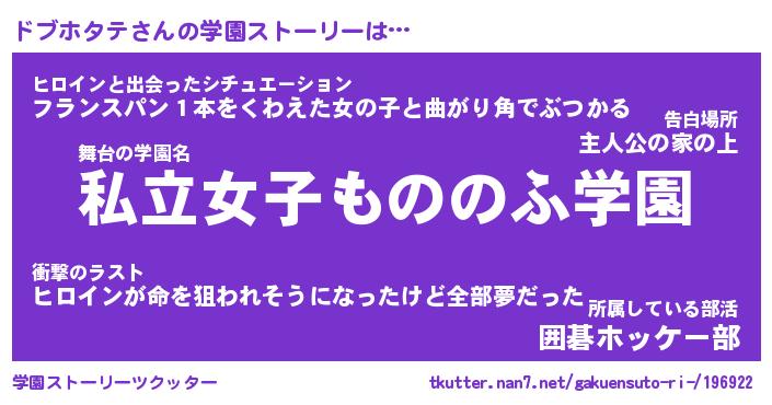 | ヒーロー風カッコイイあだ名 | 『スーパードブホタテ』『炎刃騎士ドブ』 |