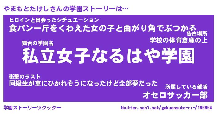 | 女子向けラノベタイトル風あだ名 | 『誰かこのやまもとたけしを説明してください! ~契約から始まるウェディング~』 |