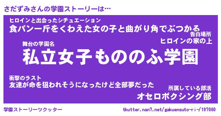| 男性向けラノベタイトル風あだ名 | 『サダズミアートオンライン』 |